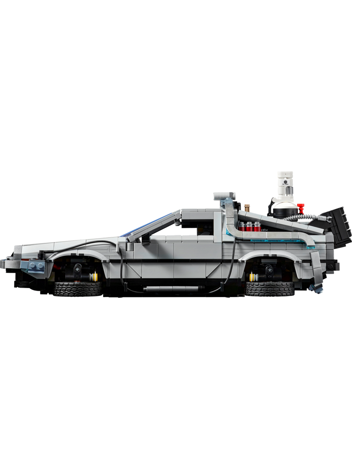 Воссоздайте легендарный автомобиль DeLorean DMC-12 в мельчайших деталях, вдохновлённый его кинематографическими превращениями. Модель обладает потрясающей детализацией и функциональностью: открывающиеся двери-«крылья чайки», капот и багажник, скрывающий ядерный реактор. Главная особенность — возможность трансформации машины в три ключевых варианта из разных фильмов: Часть I (светящийся конденсатор потока), Часть II (режим полёта с работающими крыльями и поворачивающимися колёсами) и Часть III (паровозный толкатель и огнестрельные повреждения). В набор также входят минифигурки Марти МакФлай и Дока Брауна, аксессуары в виде консервной банки для альтернативного топлива и табличка «Вход воспрещён!».