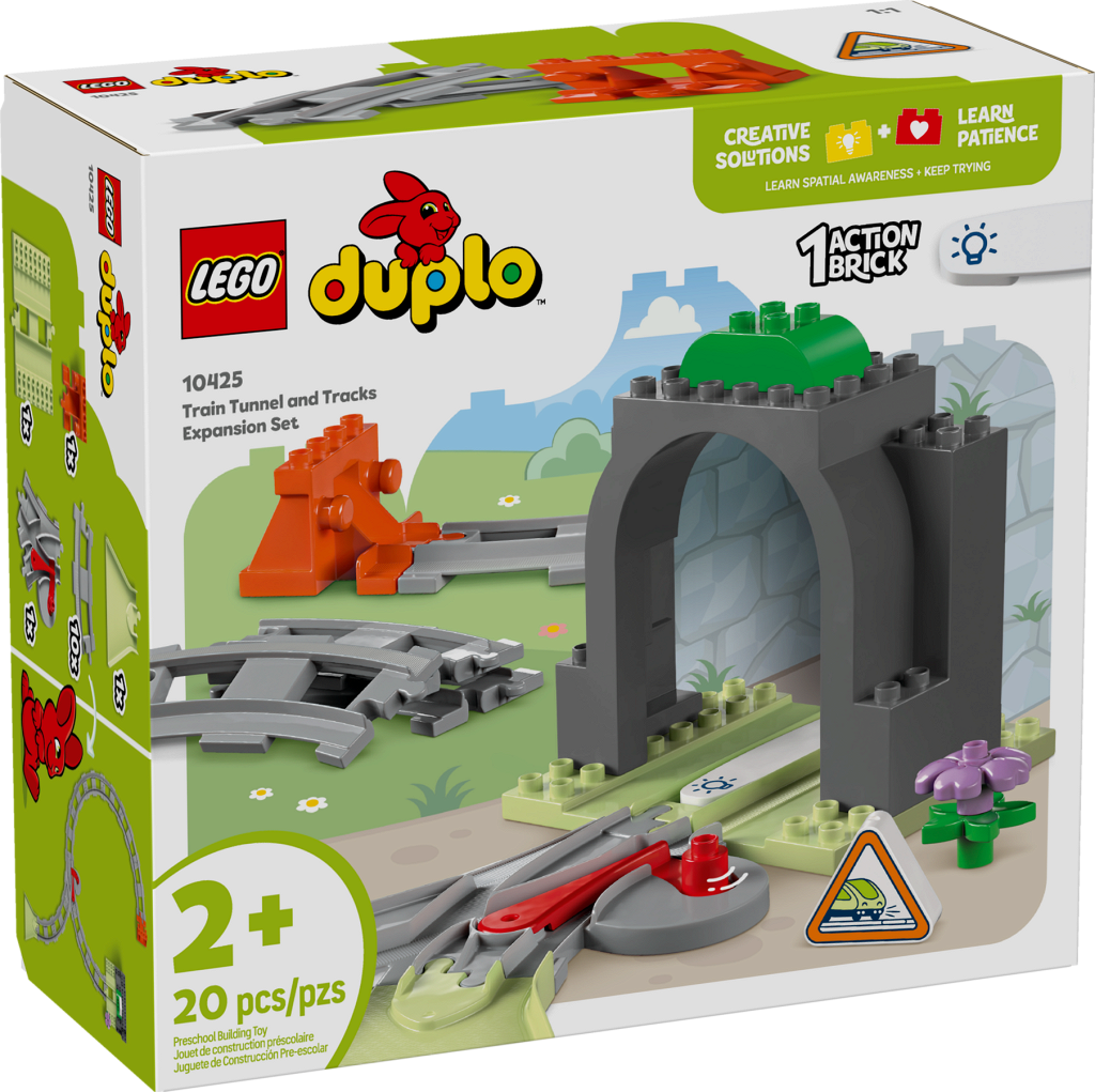 Конструктор LEGO DUPLO 10425 Железнодорожный туннель и пути — это увлекательный набор из серии LEGO DUPLO, разработанный специально для детей от 2 лет. Он позволяет собрать железнодорожный туннель с рельсами, создавая собственную железнодорожную дорогу для поездов LEGO DUPLO.