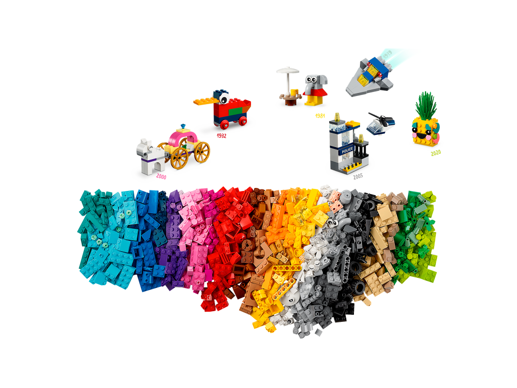 Конструктор LEGO Classic 90 Years of Play 11021 посвящён 90-летию бренда LEGO и включает разнообразные детали для свободного творчества. Набор из серии LEGO Classic позволяет собирать различные модели — от простых фигурок до небольших построек.