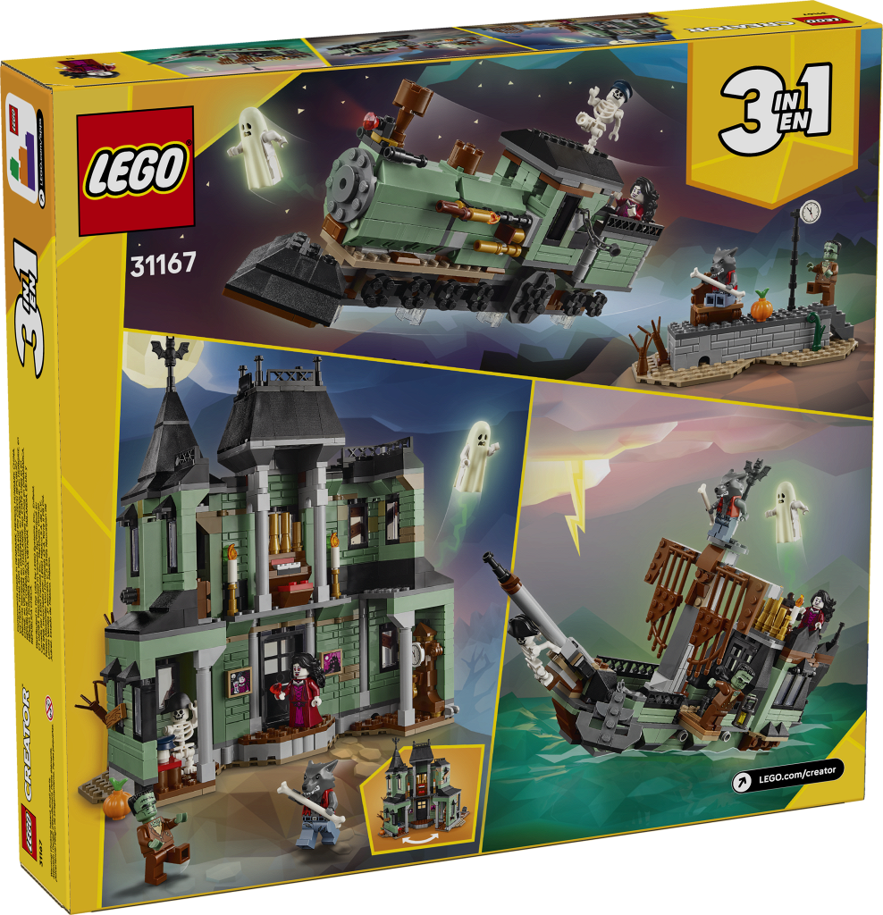 LEGO Creator 31167 «Особняк с привидениями» — это атмосферный конструктор 3-в-1 из серии LEGO Creator, выпущенный в 2025 году. Набор из 736 деталей предназначен для детей от 9 лет и предлагает три варианта сборки жутких моделей из одного набора кубиков для бесконечных мистических приключений .