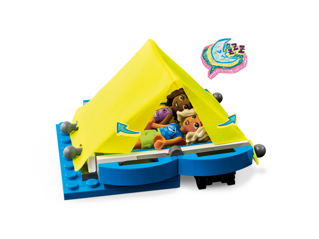Соберите кемпинговую площадку в лесу с палаткой, оборудованной спальными местами и деталями интерьера, а также костровище с котелком для ухи. Главной особенностью набора является большой телескоп на поворотной подставке для наблюдения за ночным небом. В набор входят минифигурки подруг LEGO Friends, а также фигурки лесных животных (например, енота или оленя) для полного погружения в атмосферу. Используйте аксессуары (фонарик, кружки, карта звёздного неба) для создания сценариев походной жизни, астрономических открытий и ночных приключений.