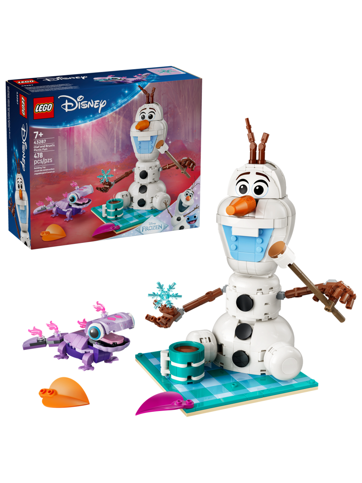 Конструктор LEGO Disney 43287 Веселый пикник Олафа и Бруни — это игровой и коллекционный набор из серии LEGO Disney, предназначенный для детей от 6 лет. Он позволяет собрать сцены веселого пикника с любимыми персонажами мультфильма — снеговиком Олафом и огненным духом Бруни.