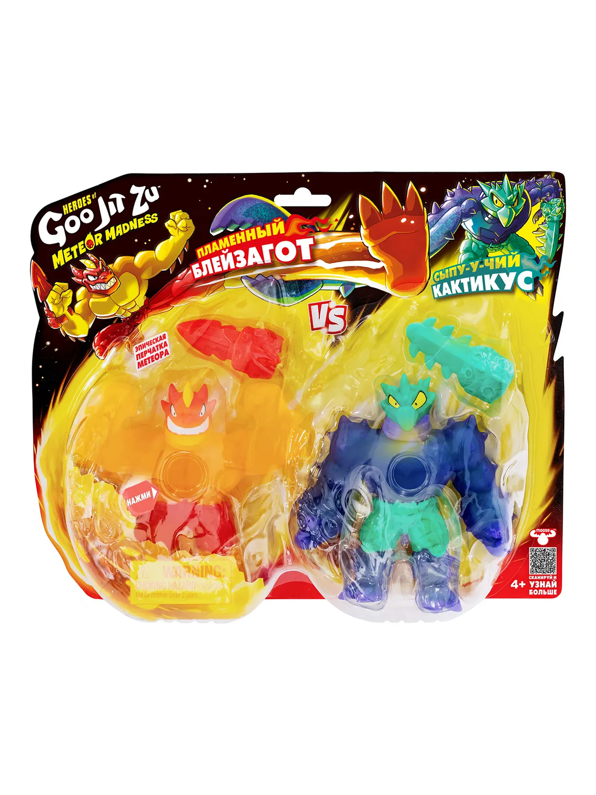 Игровой набор GooJitZu 67959 «Пламенный Блейзагот VS Кактикус» — это эпический набор из двух тянущихся фигурок для супергибких битв и бесконечных игровых сценариев! Яркий огненный супергерой Блейзагот и колючий кактус-монстр Кактикус созданы из уникального эластичного материала, который позволяет растягивать их в несколько раз, скручивать, бросать и наблюдать, как они медленно восстанавливают свою форму. Устройте захватывающее противостояние стихий, придумывайте новые способы атаки и защиты, создавайте невероятные трансформации — возможности ограничены только фантазией. Фигурки прочные, яркие и приятные на ощупь, что делает их идеальными для активных игр. Этот набор станет отличным подарком для детей от 4 лет, развивающим воображение, мелкую моторику и дарящим часы динамичного веселья и тактильного взаимодействия без границ!