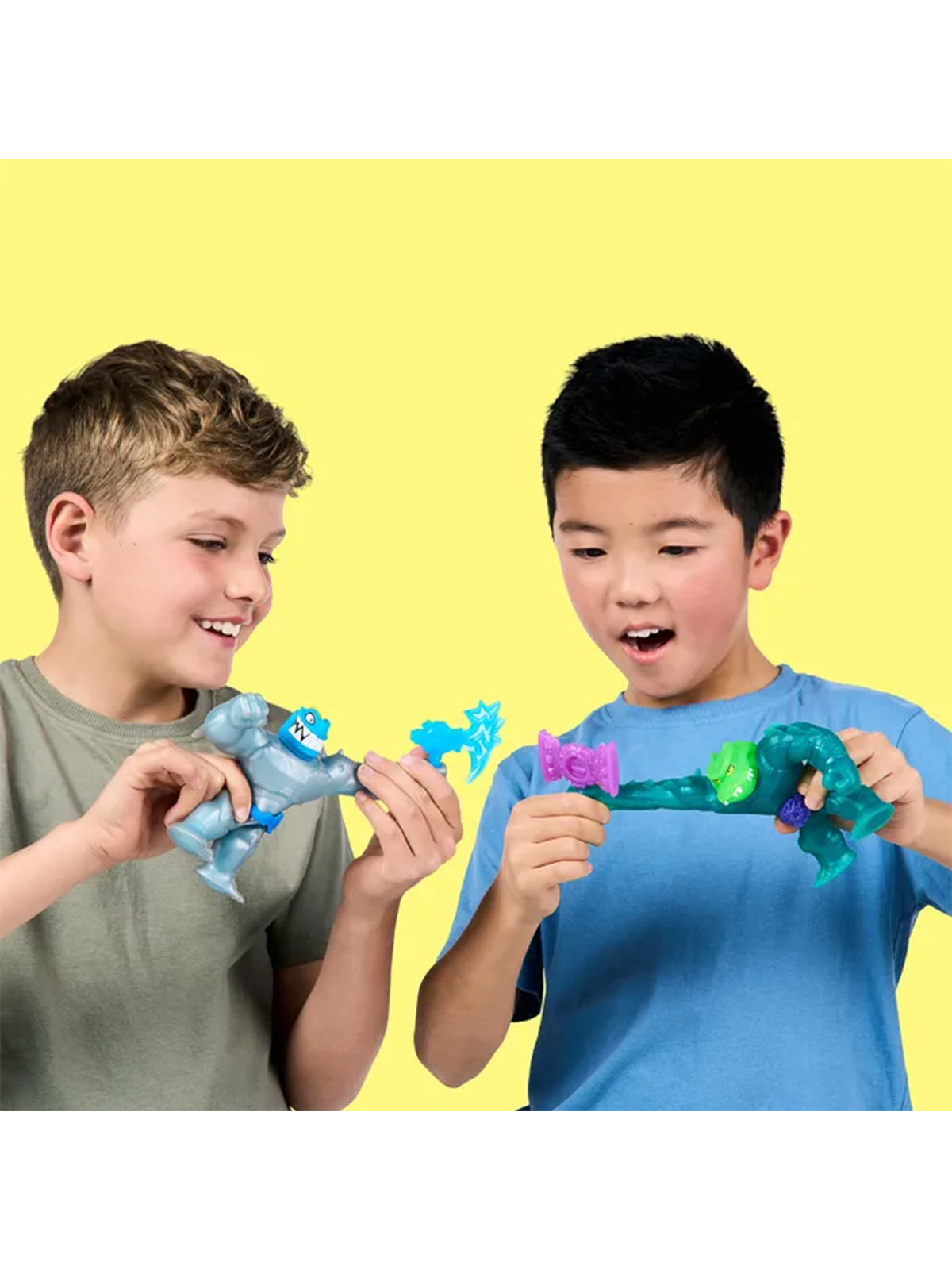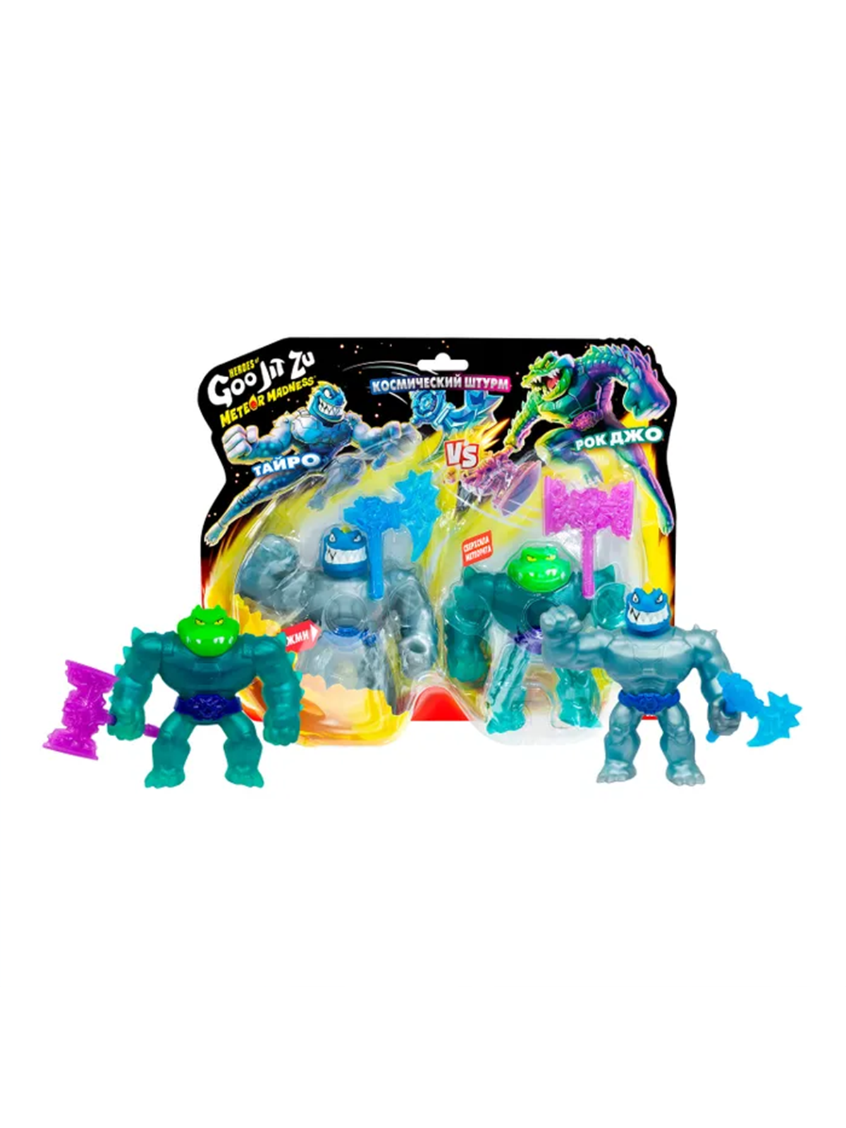 Игровой набор Goo Jit Zu Тайро VS Рок Джо 71042 включает две суперэластичные фигурки, готовые к динамичным поединкам. Герои можно растягивать, сжимать и скручивать — они возвращаются в исходную форму благодаря специальному наполнителю.
