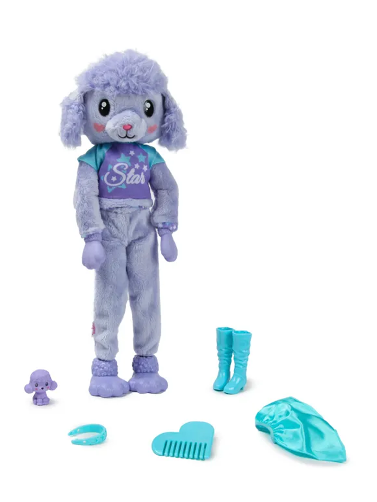 Барби Cutie Reveal HKR05 — игривый сюрприз в костюме пуделя! Набор включает мягкую игрушку-пуделя, внутри которой спрятана кукла Челси. В комплекте — тематическая одежда (костюм с кудряшками и ушками), аксессуары для волос и дополнительные сюрпризы (например, заколки-бантики или мини-аксессуары). Игровой набор развивает воображение и радость открытий у детей от 3 лет.