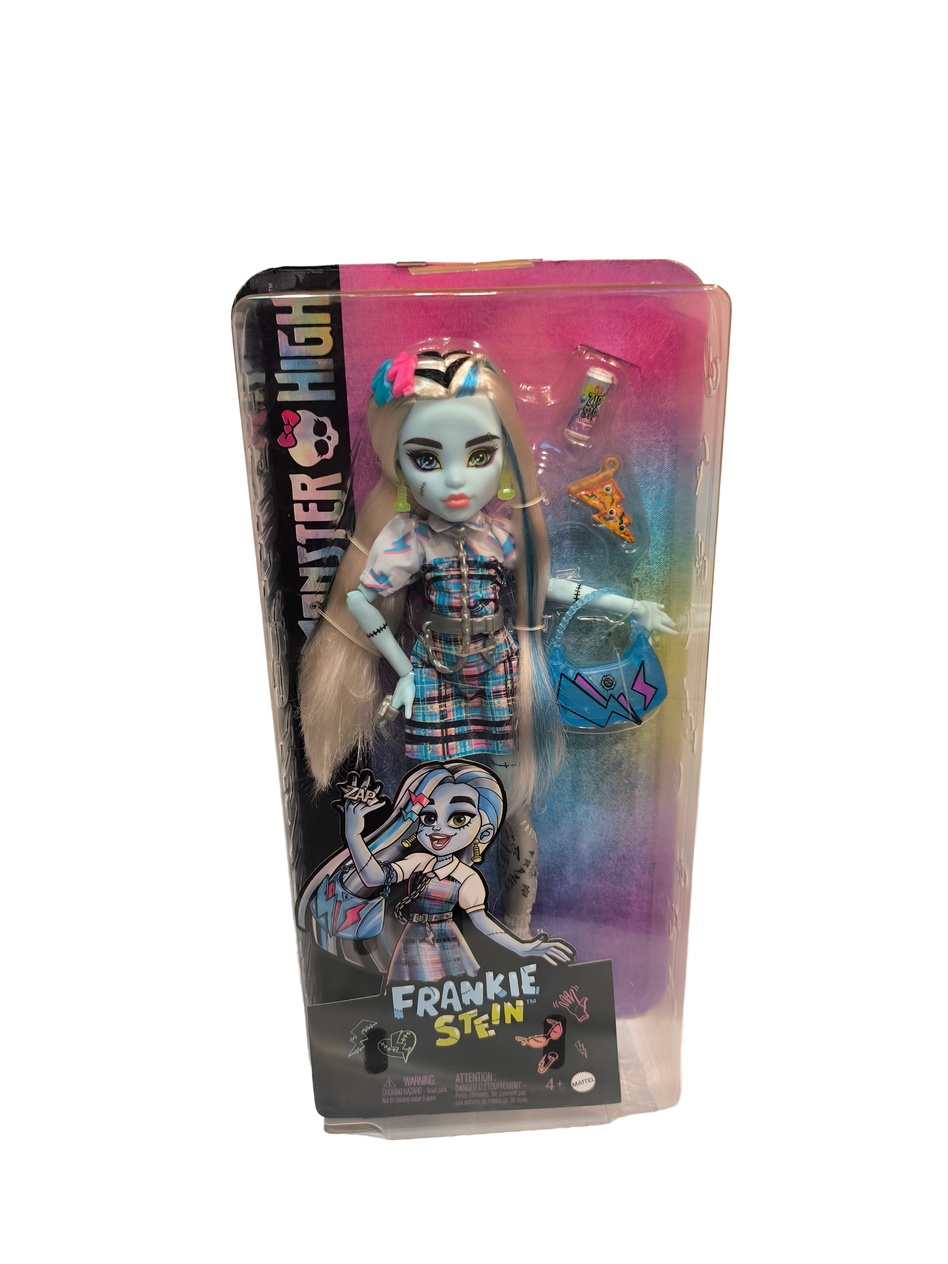 Кукла Monster High «Day Out Frankie Stein» HKY73 — стильная прогулочная версия для повседневных приключений! Набор включает куклу Фрэнки Штейн в модном городском образе, упакованную в тематическую коробку с урбанистическим дизайном. В комплекте — детализированный прогулочный комплект с молниевыми акцентами, тематические аксессуары (рюкзак с патчами, наушники и мини-гаджет) и специальный бонус — брелок с символом монстра. Игровой набор развивает творческое мышление и чувство стиля у детей от 6 лет и коллекционеров.