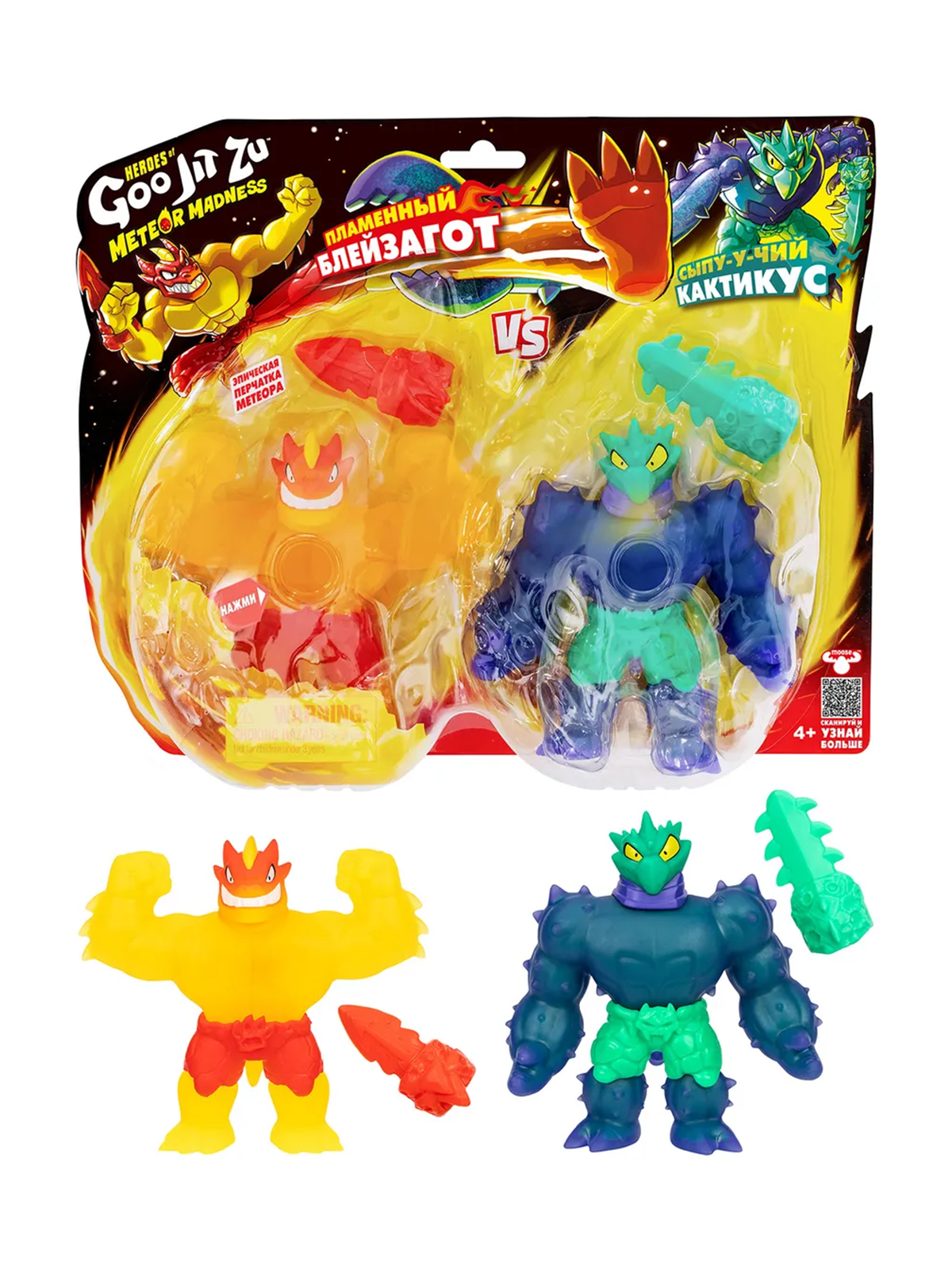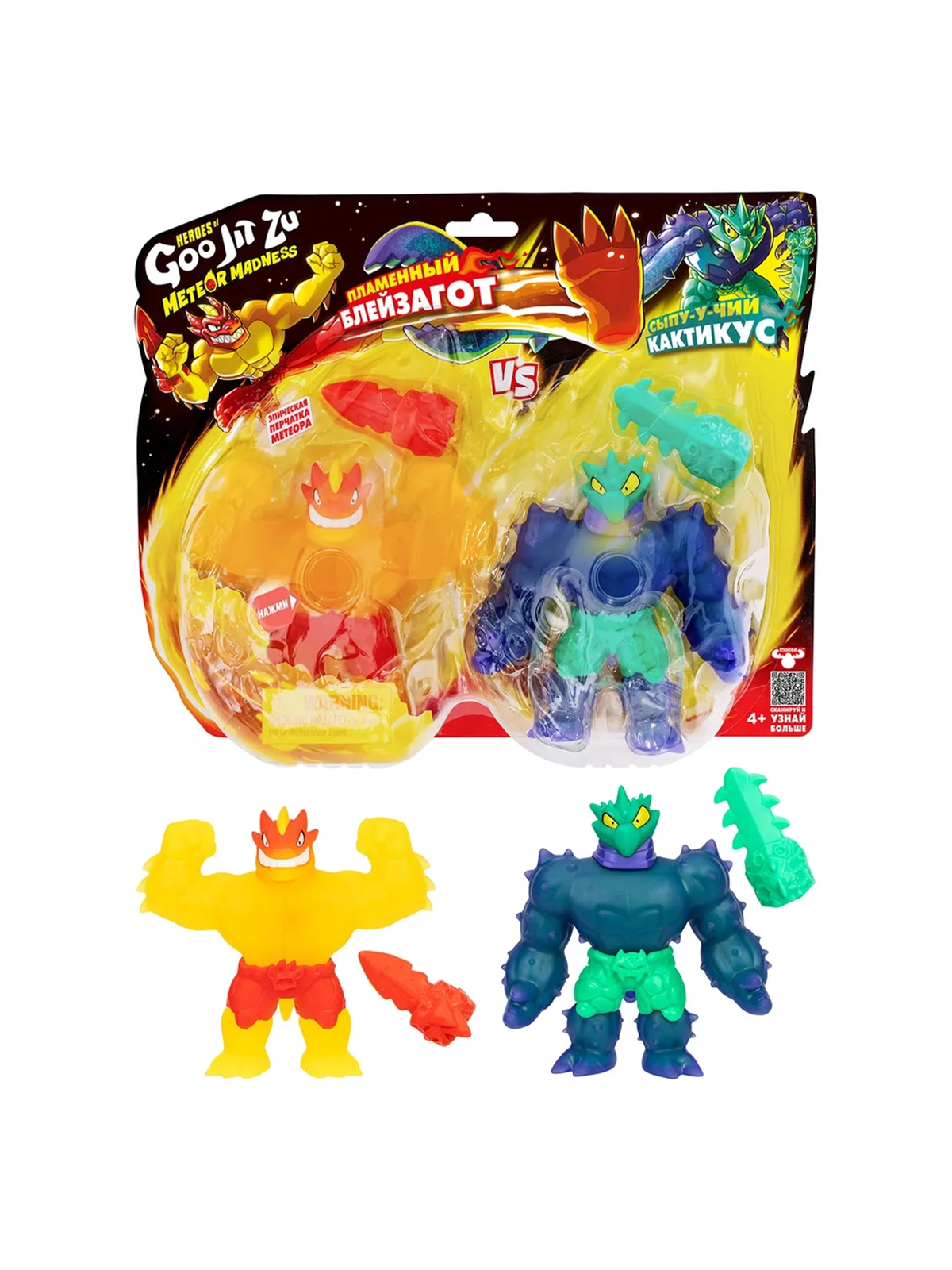 Игровой набор GooJitZu 67959 «Пламенный Блейзагот VS Кактикус» — это эпический набор из двух тянущихся фигурок для супергибких битв и бесконечных игровых сценариев! Яркий огненный супергерой Блейзагот и колючий кактус-монстр Кактикус созданы из уникального эластичного материала, который позволяет растягивать их в несколько раз, скручивать, бросать и наблюдать, как они медленно восстанавливают свою форму. Устройте захватывающее противостояние стихий, придумывайте новые способы атаки и защиты, создавайте невероятные трансформации — возможности ограничены только фантазией. Фигурки прочные, яркие и приятные на ощупь, что делает их идеальными для активных игр. Этот набор станет отличным подарком для детей от 4 лет, развивающим воображение, мелкую моторику и дарящим часы динамичного веселья и тактильного взаимодействия без границ!