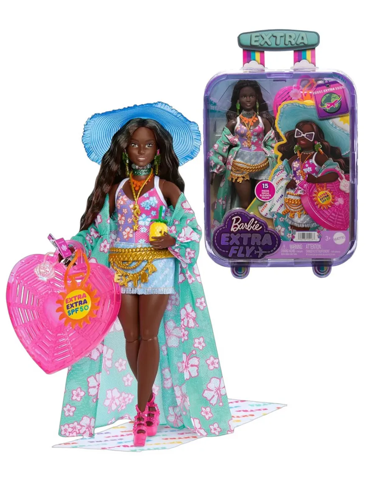 Кукла Barbie Extra Fly HPB14 — яркий пляжный образ для темнокожей Барби! Кукла отличается стильным афро-причёской с цветными прядями, одета в неоновый купальник, прозрачный кроп-топ и пляжные шорты. В набор входят аксессуары: солнцезащитные очки, блеск для губ, сумка-сетка и фигурка модного питомца (например, попугай). Кукла обладает articulated телом для создания динамичных поз. Набор для девочек от 3 лет, развивающий чувство стиля и фантазию.