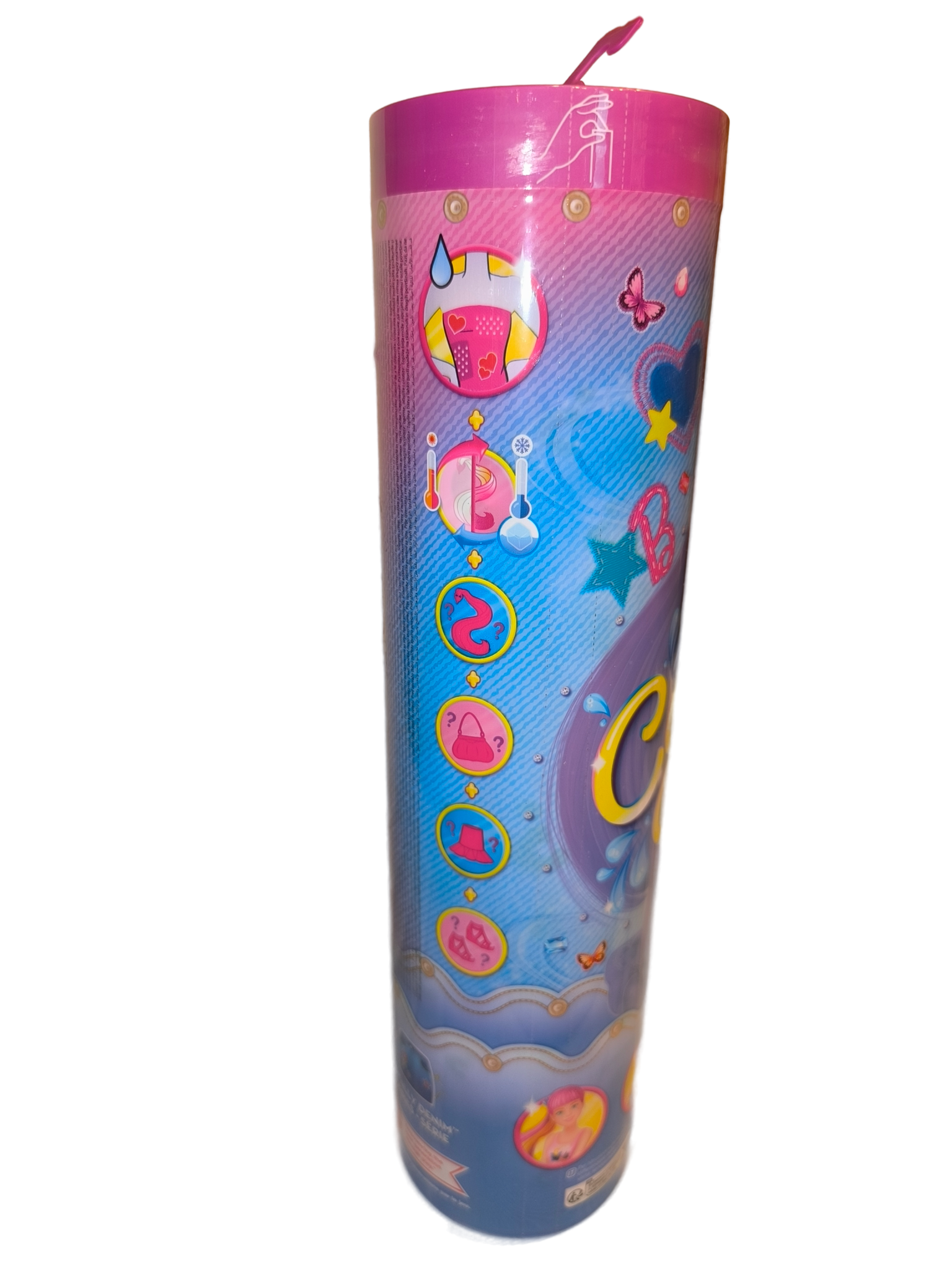 игру. Внутри цилиндра спрятана кукла с таинственным покрытием и пакетики с аксессуарами. Налейте воды,