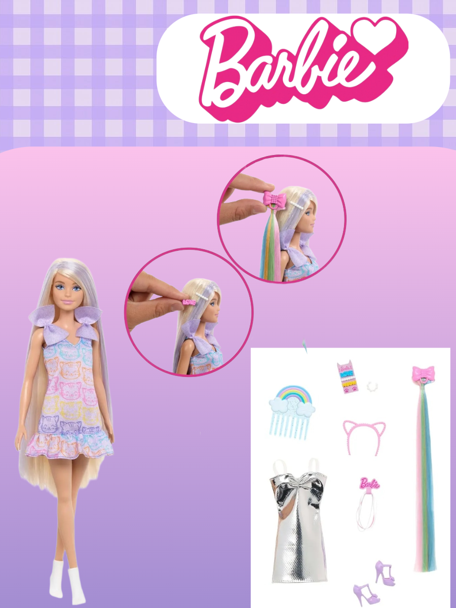 Эта милая девочка Барби приглашает юных стилистов раскрыть свой творческий потенциал благодаря своим роскошным длинным волосам (21,5 см) с эффектными цветными прядями, идеально подходящими для экспериментов с укладками и фантазиями.