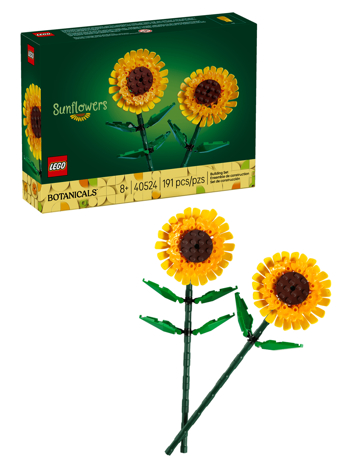 LEGO Creator 40524 «Подсолнухи» — это яркий цветочный набор из серии LEGO Botanicals, выпущенный в 2022 году. Конструктор из 191 детали предназначен для детей от 8 лет и старше, а также для всех любителей цветов и творческого досуга, предлагая собрать два реалистичных подсолнуха, которые никогда не завянут .