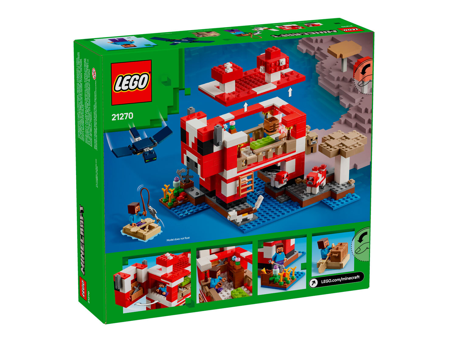 Конструктор LEGO Minecraft «Муухоморный дом» (21270) позволяет воссоздать один из самых узнаваемых объектов мира Minecraft — дом, спрятанный внутри гигантского гриба. Набор понравится всем поклонникам игры, ведь он сочетает узнаваемые блоки, любимых мобов и безграничные возможности для сюжетной игры.