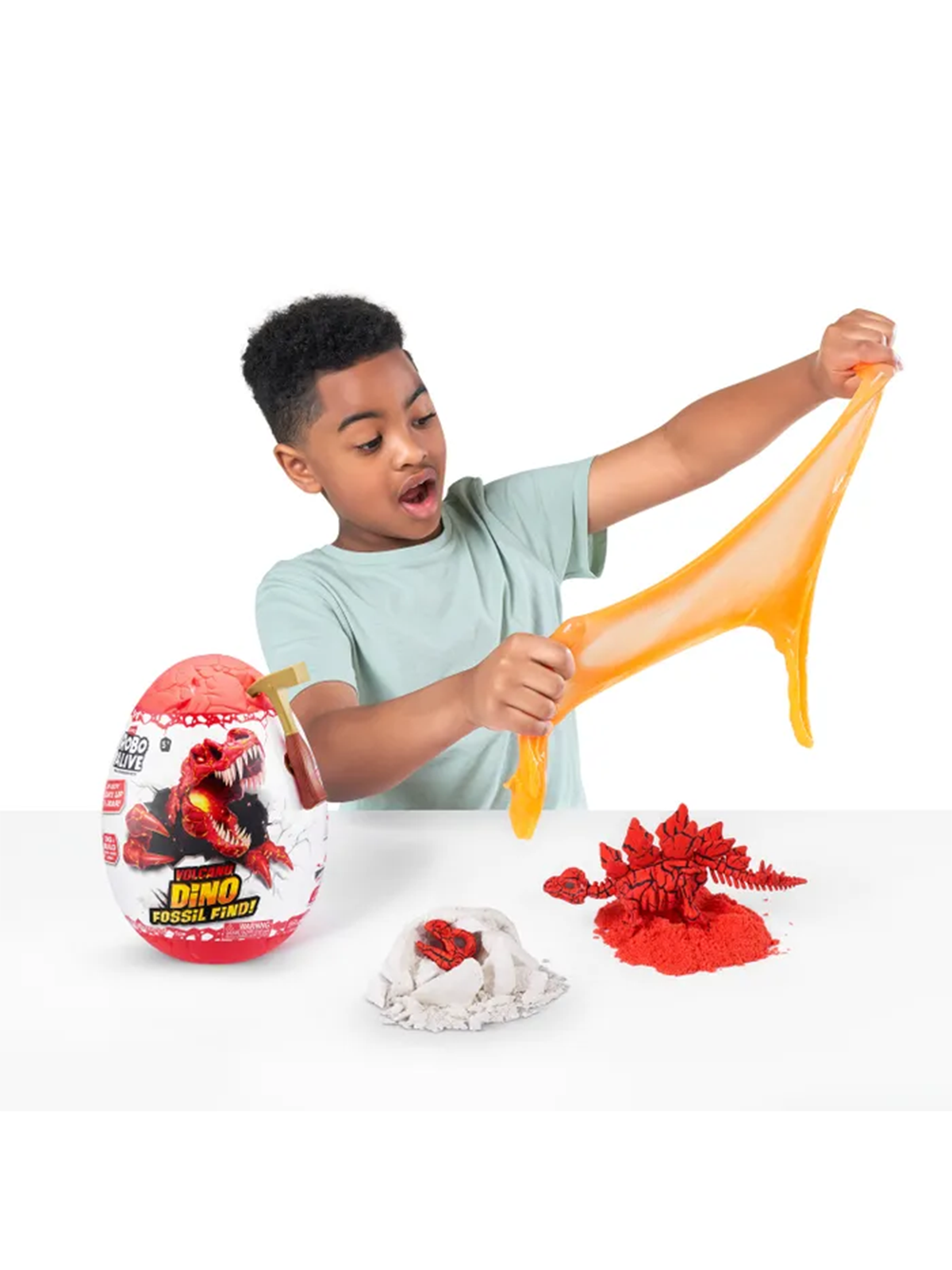 ZURU ROBO ALIVE Dino Fossil Volcano — интерактивный набор для раскопок с эффектом извержения вулкана. Ребёнку предстоит провести настоящие «археологические» работы, найти кости динозавра, собрать скелет и запустить механизм оживления.
